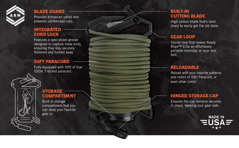 - Φορτωμένο με 50ft (15m) 550 Paracord